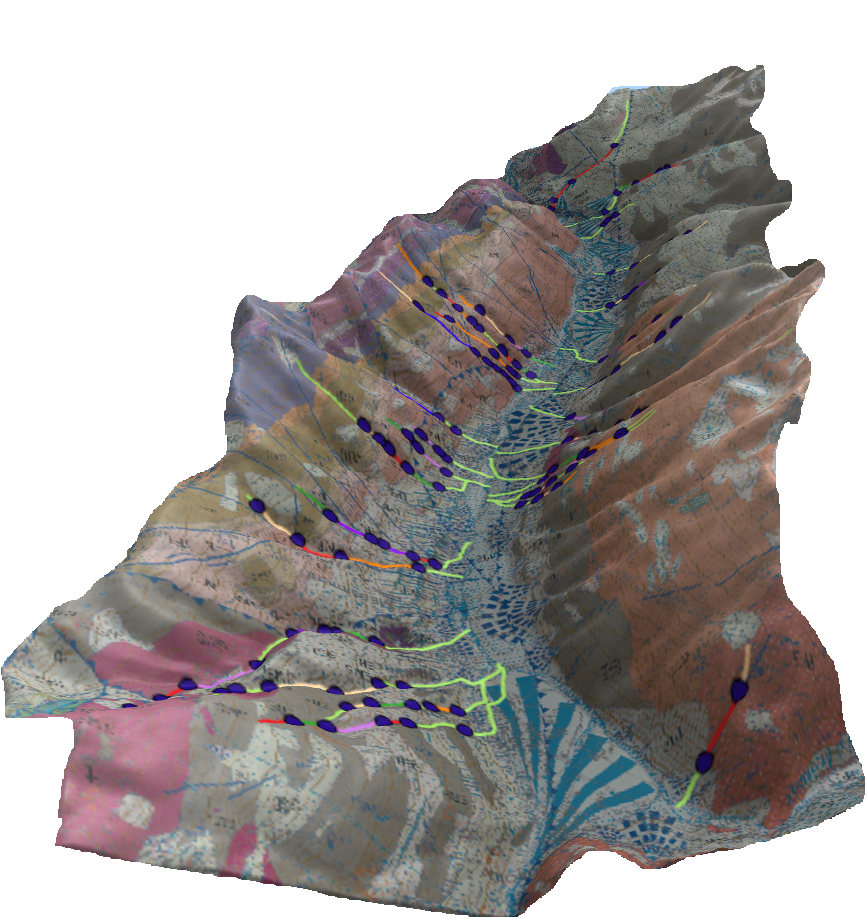 - Cartografia geologica e tematica: rilievi geologici e geomeccanici, ispezioni su fune in siti naturali o artificiali, rilievi con droni, rilievi aerofotogrammetrici e laser scan;